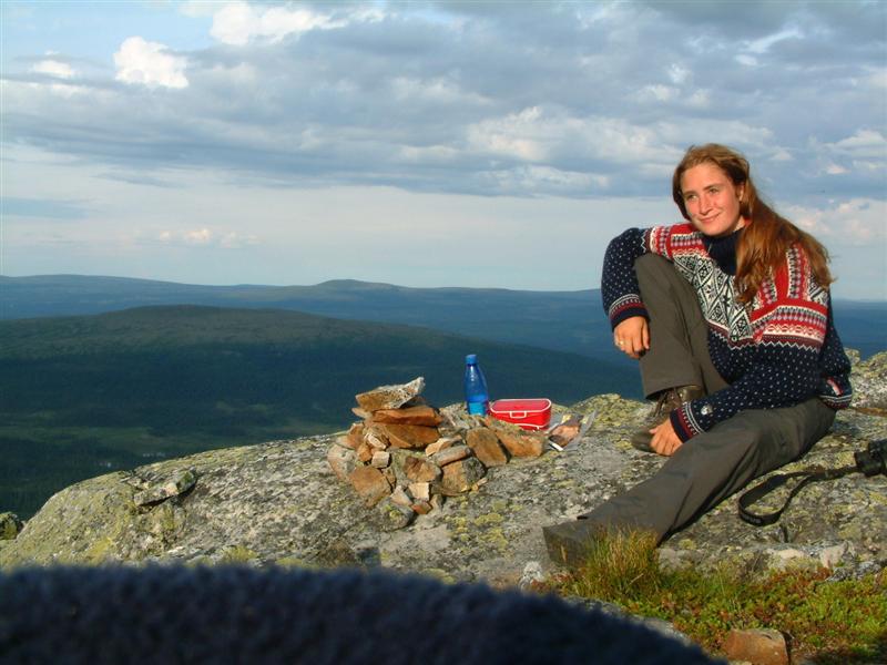 Hier esse ich genüsslich einen geräucherten Saibling nach dem Aufstieg auf den Nunatak - mit einer herrlichen Aussicht.