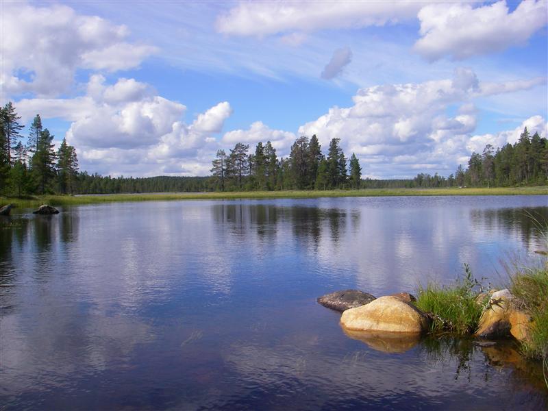 Oft gibt es auf den Bergen, die hier Fjäll genannt werden, Hütten zum Übernachten oder rasten. An einem See auf dem Fjäll lässt sich gut das Leben genießen.